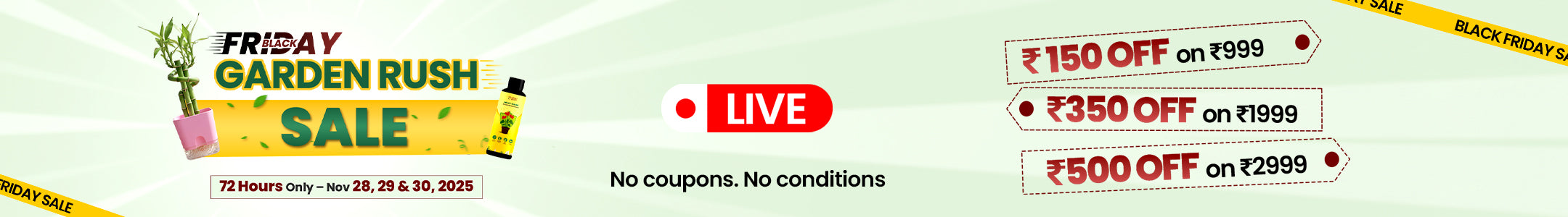 Black Friday Garden Rush SALE • Get ₹150 on ₹999, ₹350 on ₹1999, ₹500 on ₹2999