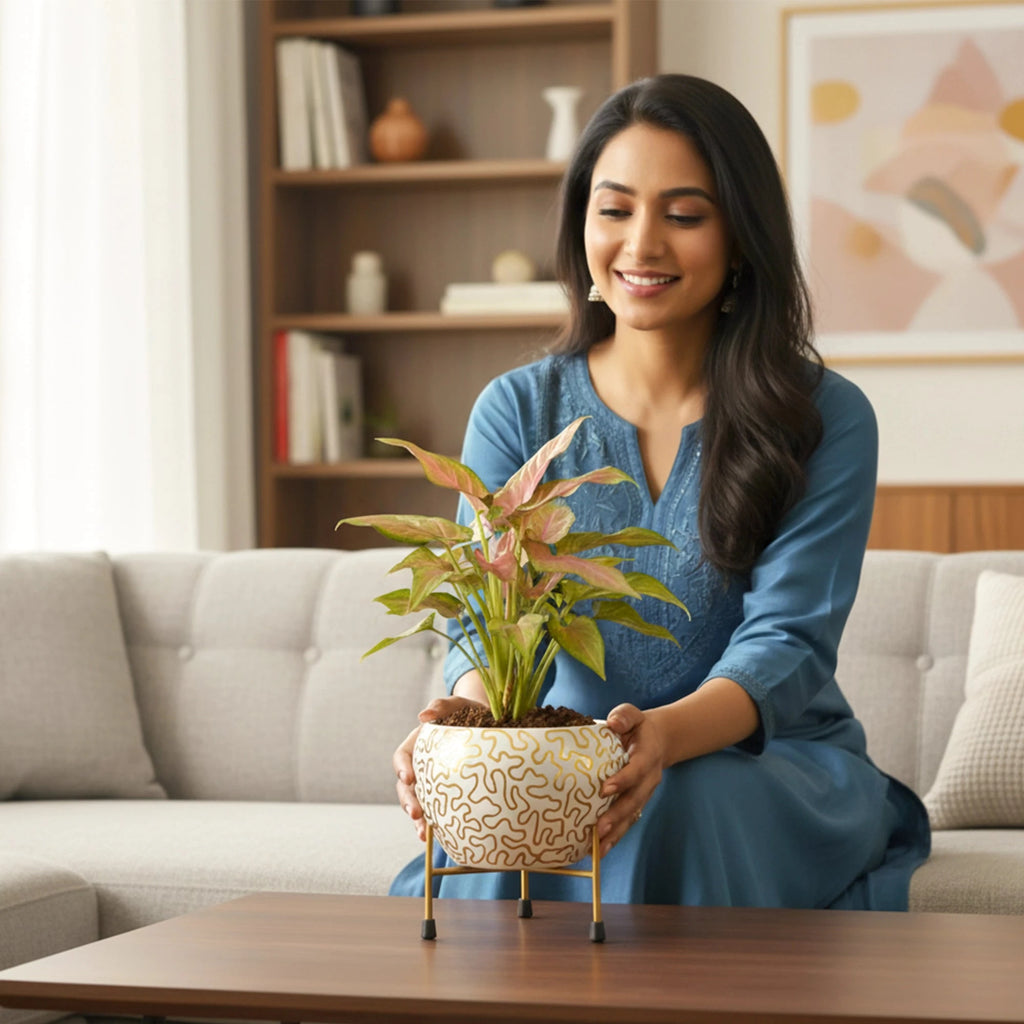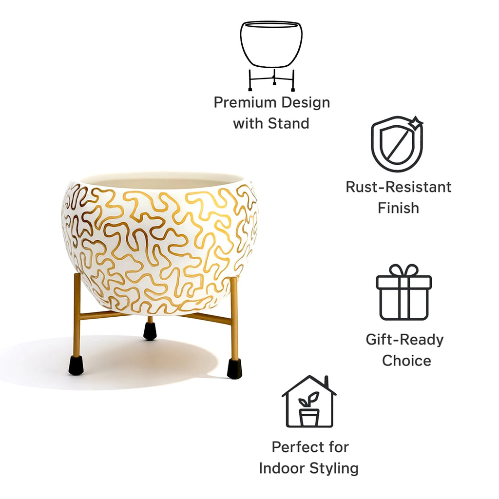 The Orchard Table-top Metal Pot features a polished finish that enhances any indoor space with its modern appeal. Crafted from durable metal, it provides long-lasting support for small to medium-sized plants like succulents or herbs. Its compact size fits easily on tables, shelves, or countertops, brightening up any room. The minimalist design complements a variety of decor styles, making it a versatile addition to your home. Easy to clean and maintain, the Orchard Table-top Metal Pot offers both style and practicality, making it the perfect display for your favorite plants.