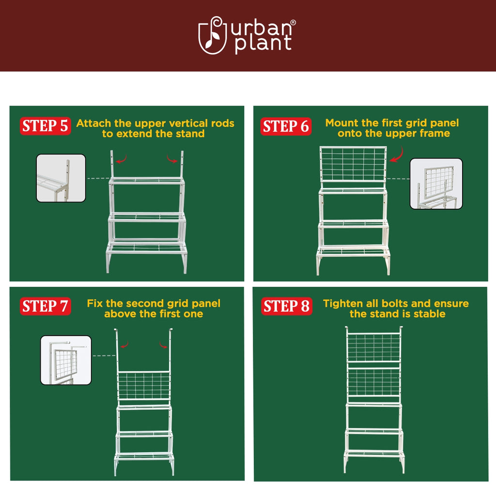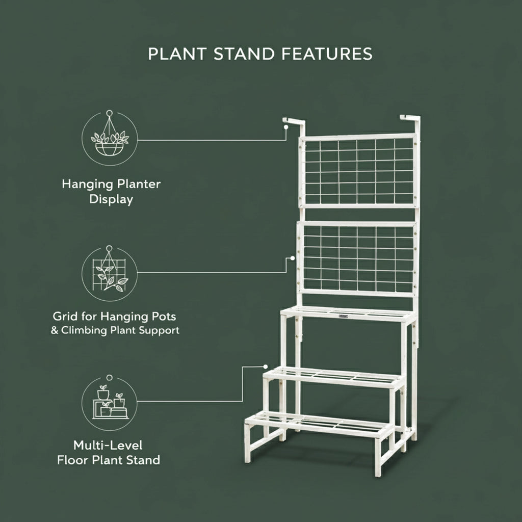 Built with a heavy-duty metal frame, ATLAS allows you to showcase multiple plants vertically without cluttering your floor space. The integrated grid panel supports hanging planters and climbing plants, helping you create a lush, layered green wall effect.
