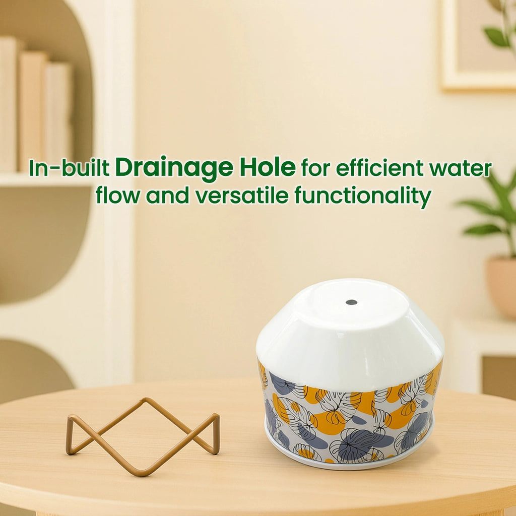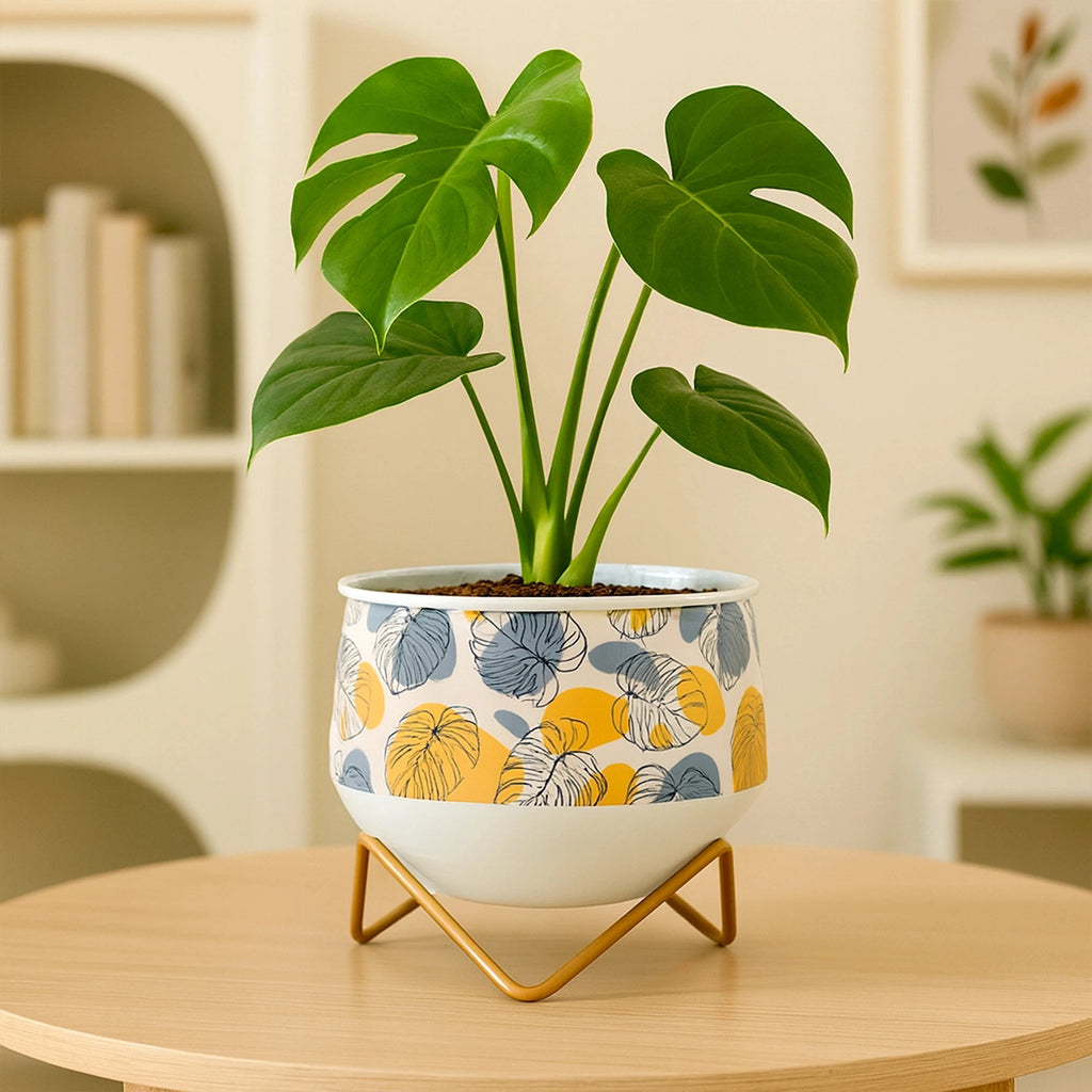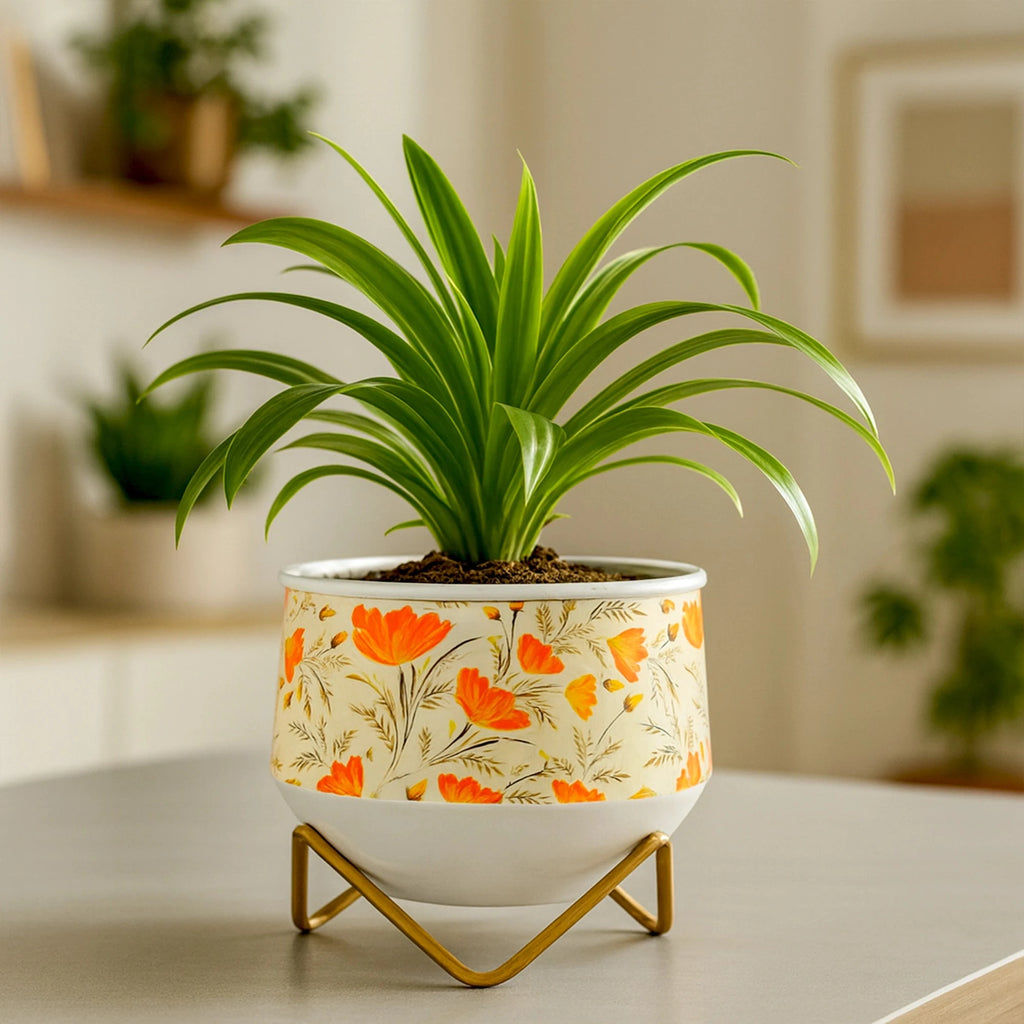 The Caramel Metal Planter adds a warm, stylish accent to your home or office. Perfect for small plants, succulents, or decorative arrangements, this mini planter is crafted from durable metal and features a beautiful caramel finish. Its compact size allows it to fit effortlessly on desks, shelves, windowsills, and countertops, adding a fresh look to any space. The minimalist design complements a variety of décor styles, making it a versatile addition to modern or rustic interiors. Lightweight and easy to relocate, this planter lets you update your plant displays with ease. A simple, elegant way to bring greenery indoor
