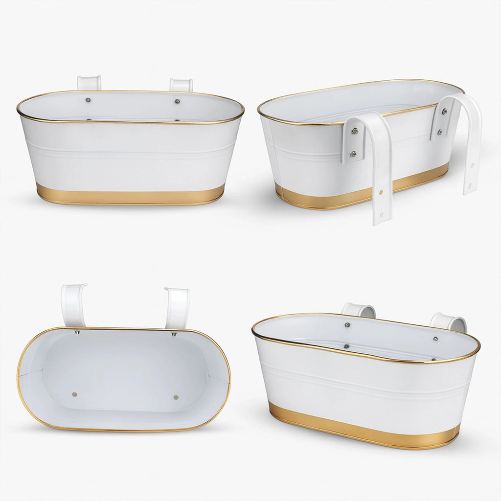 The Curve Hanging Planter combines functionality and style, offering a chic solution for displaying your favourite plants. Crafted from high-quality metal, these planters are sturdy and built to last. Their oval shape and detachable handles allow versatile placement on balconies, gardens, or walls. The 12-inch size is ideal for succulents, herbs, or decorative plants, making them perfect for both indoor and outdoor settings. The sleek white finish complements modern and classic aesthetics, blending seamlessly with any décor. Delivered as a set of 5, these planters are perfect for creating coordinated green spaces that bring life to your surroundings.