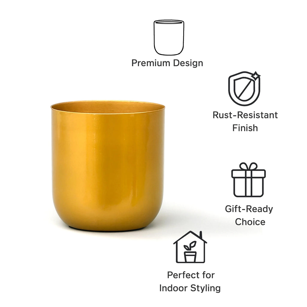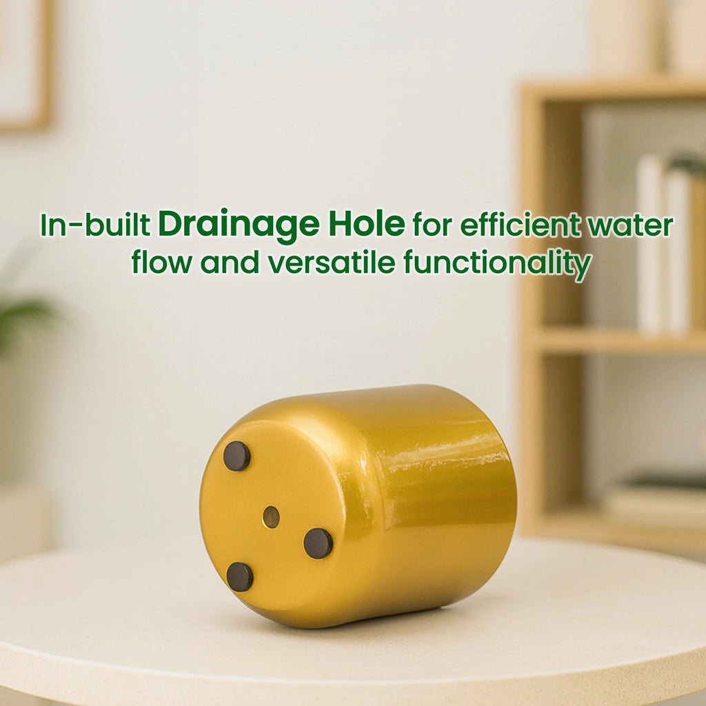 The Metallic Miniature Planter is a stylish addition to any indoor space, designed to showcase small plants like succulents, cacti, or herbs. With its sleek metallic finish, it adds a modern, sophisticated touch to your decor. Perfectly sized for windowsills, desks, shelves, or any small area, this compact planter is both practical and decorative. Made from durable, rust-resistant metal, it ensures long-lasting use while maintaining its elegant shine. The minimalist design complements various decor styles, making it ideal for homes, offices, or even as a thoughtful gift. Easy to maintain, simply wipe it with a soft cloth to preserve its gleaming look.