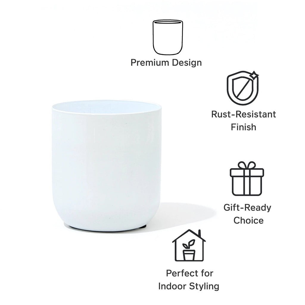 The Metallic Miniature Planter (White - Pack of 1) is the perfect blend of style and functionality for your small plants. Featuring a sleek white metallic finish, this planter adds a modern, minimalist touch to any space. Ideal for succulents, cacti, herbs, or other miniature plants, its compact size makes it perfect for windowsills, desks, or shelves. Made from durable, rust-resistant metal, this planter ensures long-lasting quality while maintaining its elegant appearance. Whether placed in your living room, office, or kitchen, it’s a versatile and stylish addition to any decor. Easy to clean and maintain, it will continue to shine for years.