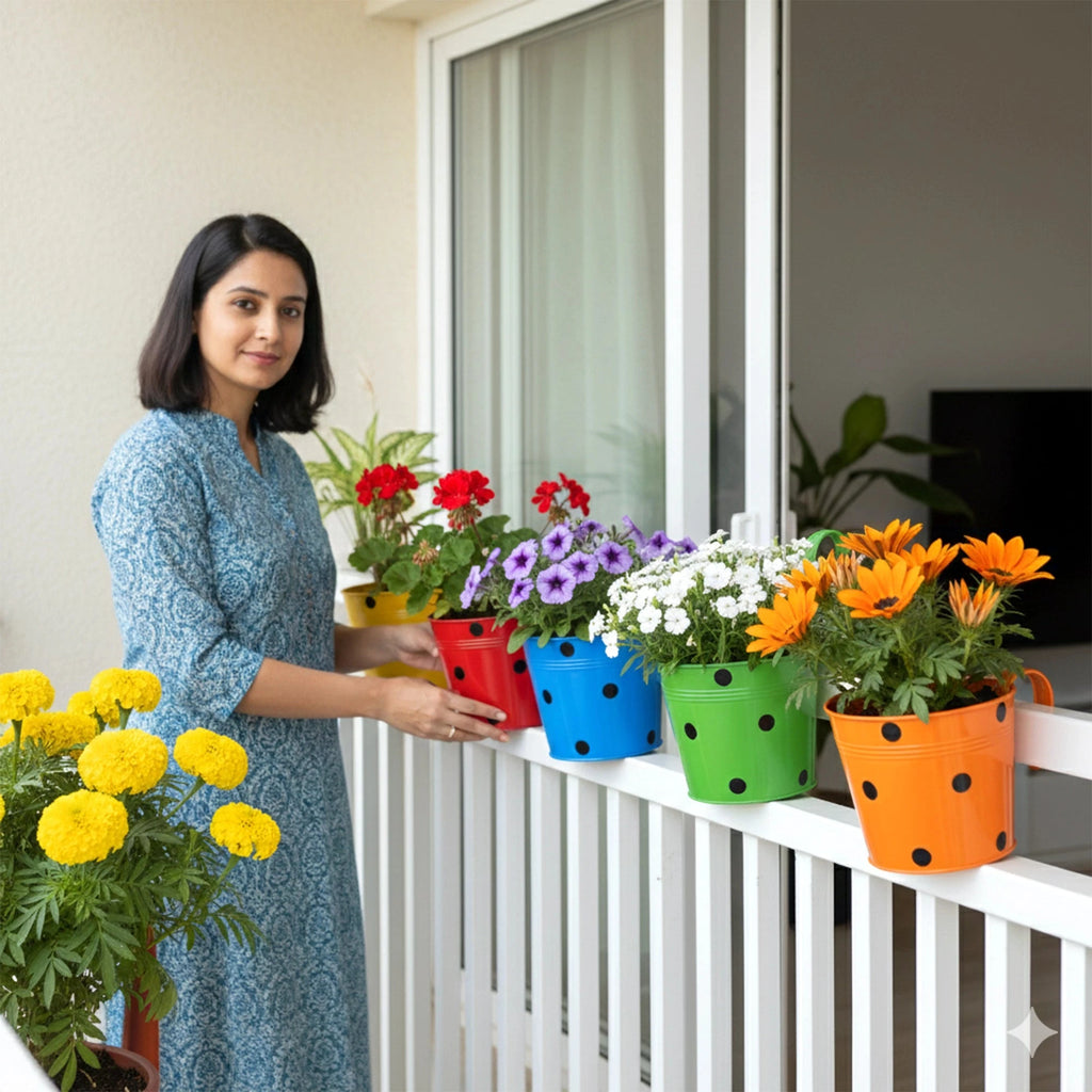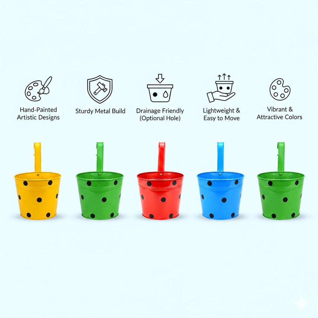 Colourcrest Hanging Planters add vibrant colour and charm to any indoor or outdoor space. This set of five multicoloured planters is crafted from durable, rust-resistant metal, designed to retain its bold hues season after season. Each planter comes with a secure hanging hook, making it easy to display on railings, balconies, or fences. Perfectly sized for small plants, flowers, or herbs, these planters create a lively, compact vertical garden that fits in any space. With built-in drainage holes, the Colourcrest planters help prevent overwatering, ensuring plants stay healthy and thriving. Bring a splash of colour and natural beauty to your home with these stylish planters.